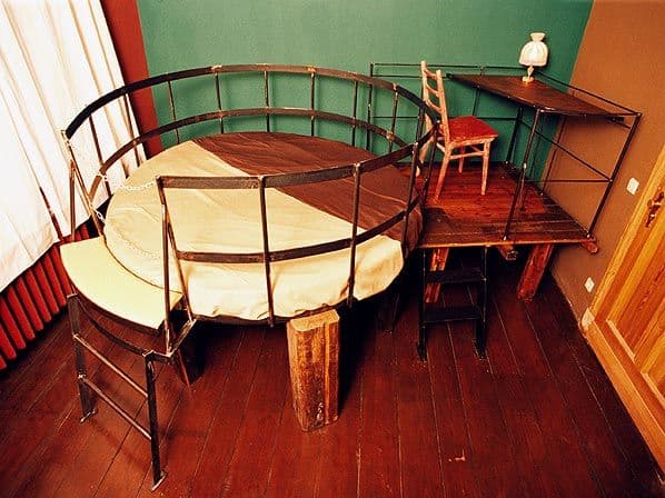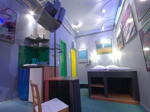 If you’re in an artistic mood, you can choose from a variety of rooms including the Blue Room, Clouds Room or the Floating Room. If you’re afraid you’ve gone insane and you might hurt yourself, you may want to stay in the Green Padded Room. Feeling a little weird, how about staying in the Coffin Room or the Jail Cell Room? Check out the gallery below for some other unusual hotel rooms at the Propeller Island City Lodge.