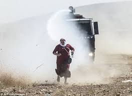 Disperse: Turkish police use water cannon during angry protests against the Islamic State in Istanbul today