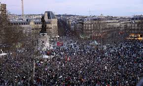 مشاركة مئات الآلاف في مسيرات في شوارع باريس اليوم الأحد، لتكريم ضحايا الهجمات الإرهابية التي وقعت هذا الأسبوع ولإظهار الوحدة.