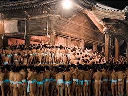 More than 9000 Japanese gathered in Saidaiji temple in the city of Okayama in Japan for Making the historical Missouri naked hoping to get one of the charms of luck thrown by the priests.